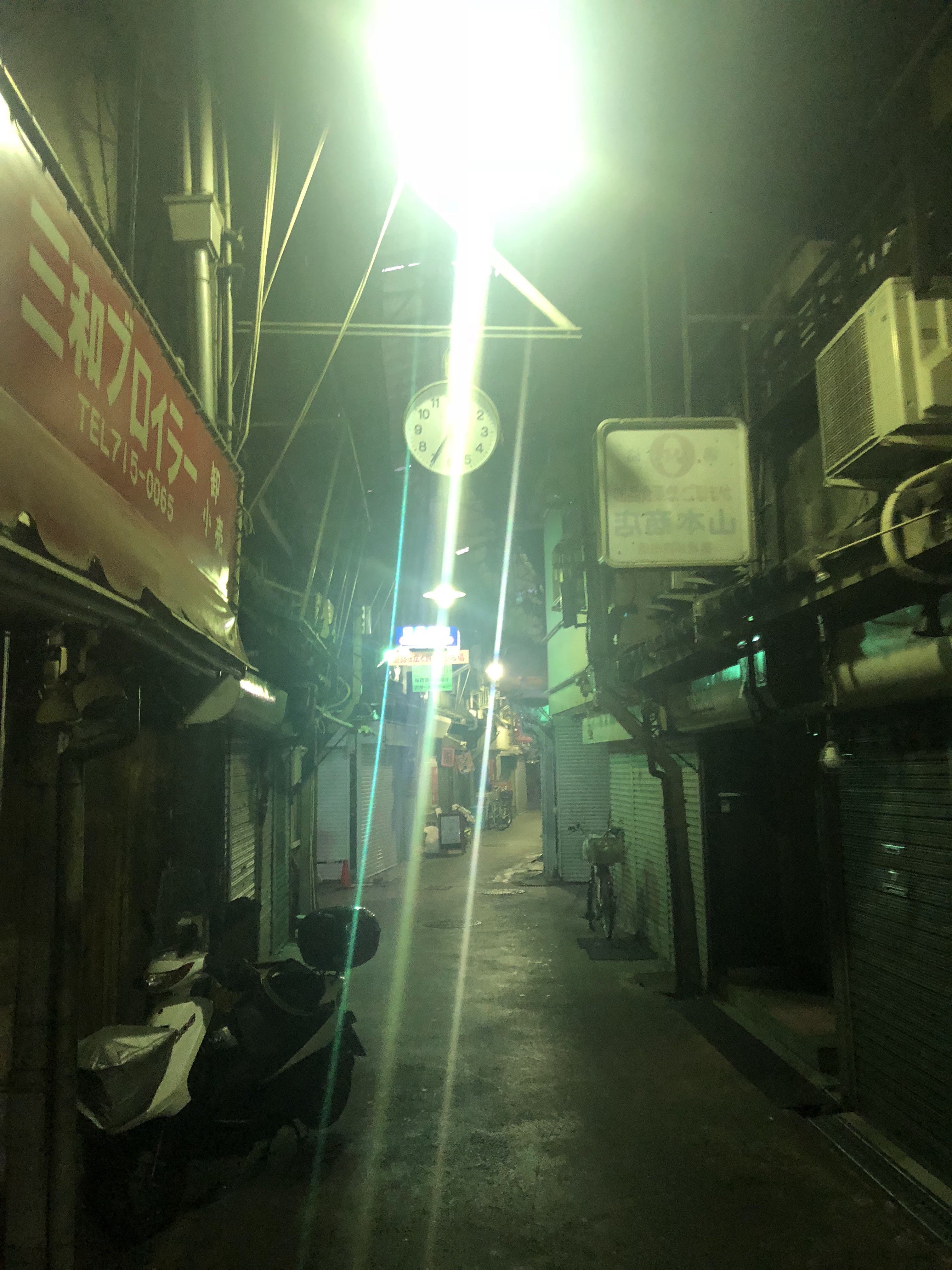 In the wee hours, the main thoroughfares are never quite empty of city maintenance workers and salarymen avoiding going home, and the shuttered shopping arcades get downright crowded with homeless encampments and loud groups of hosts walking home or to the last-to-close hostess clubs. They tend to leave me alone, so I usually take these better-lit routes home.