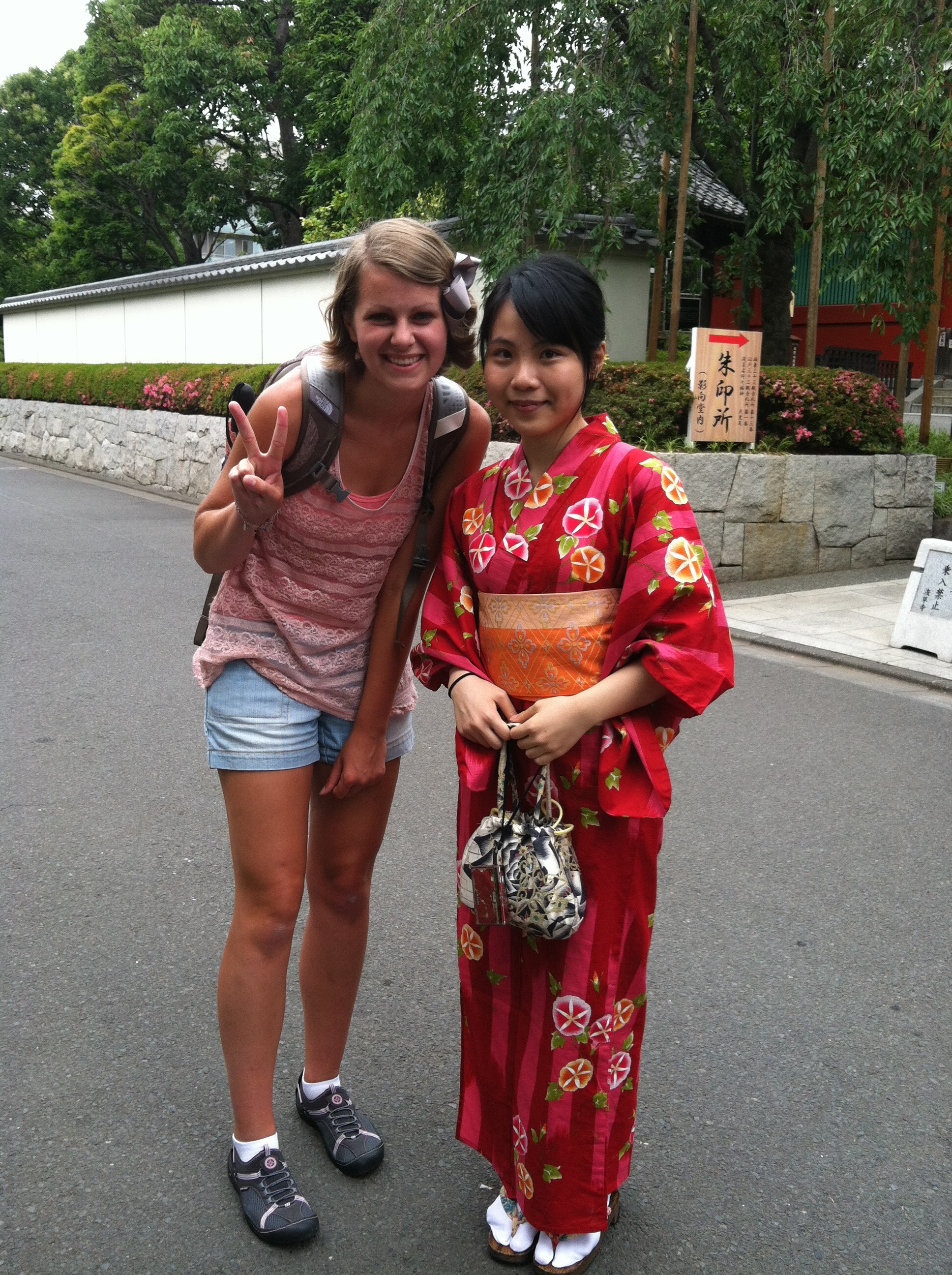 If it helps, I did one touristy thing that first day. The internet insisted that girls walking around in kimono would always be delighted to be asked for a photo together, like they’re unpaid Disney park characters. So I asked one. She agreed, but seemed pretty meh about the whole ordeal. I was, too, I’m never doing it again — but look how pretty! 3.5 friends and counting…