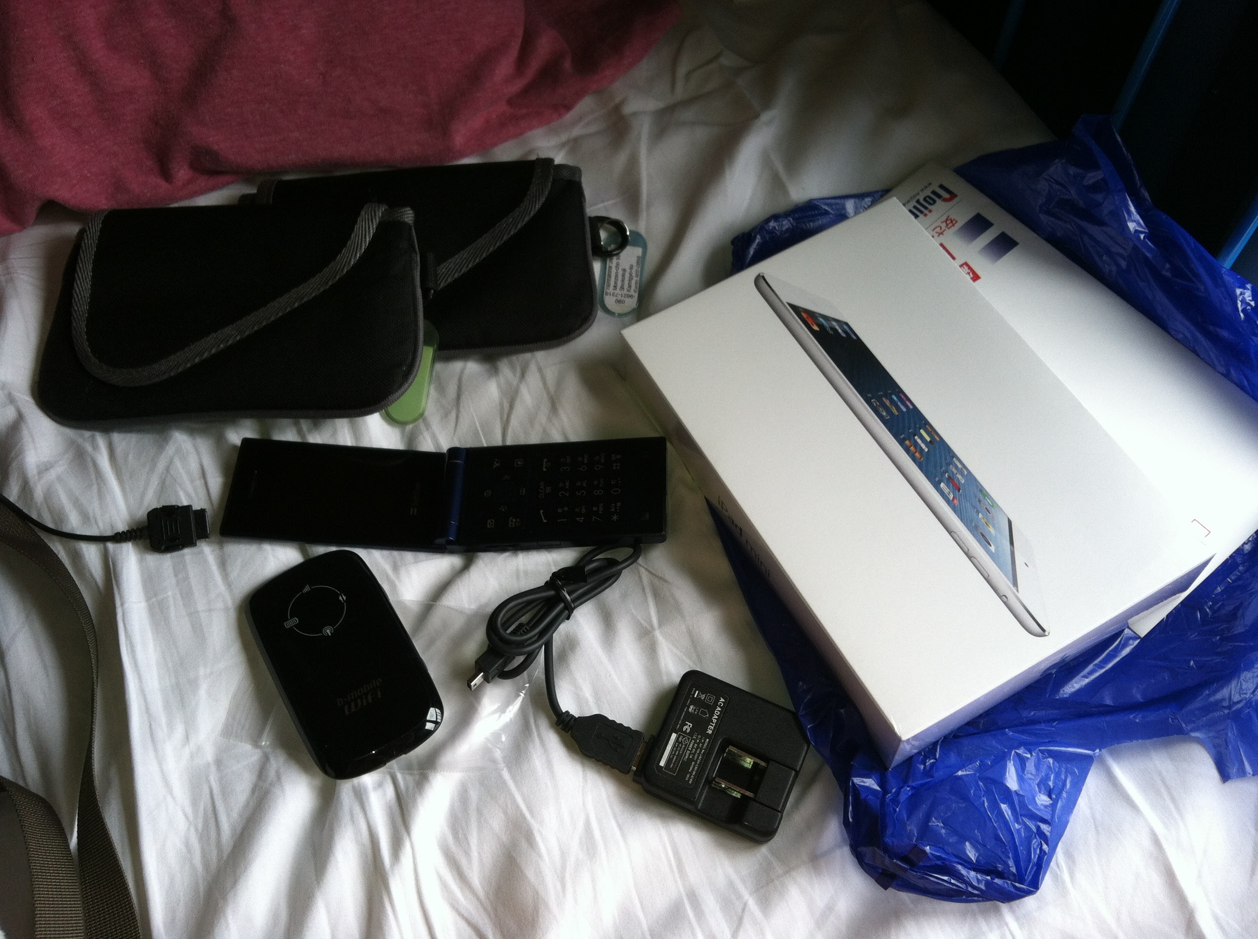I have my iPhone 4S, but I keep it on airplane mode the whole trip, terrified of International Roaming charges. But my dad, ever ahead of the technological curve (and me), has been emailing with me about my trip so far (it can be lonely when you’re the only person you know in your current time zone, and there’s my dad, wide awake at 1 AM EST on an ER shift), and the next thing I know, a package arrives at Hostel S for me, containing a rental track phone and a Wi-Fi hotspot.