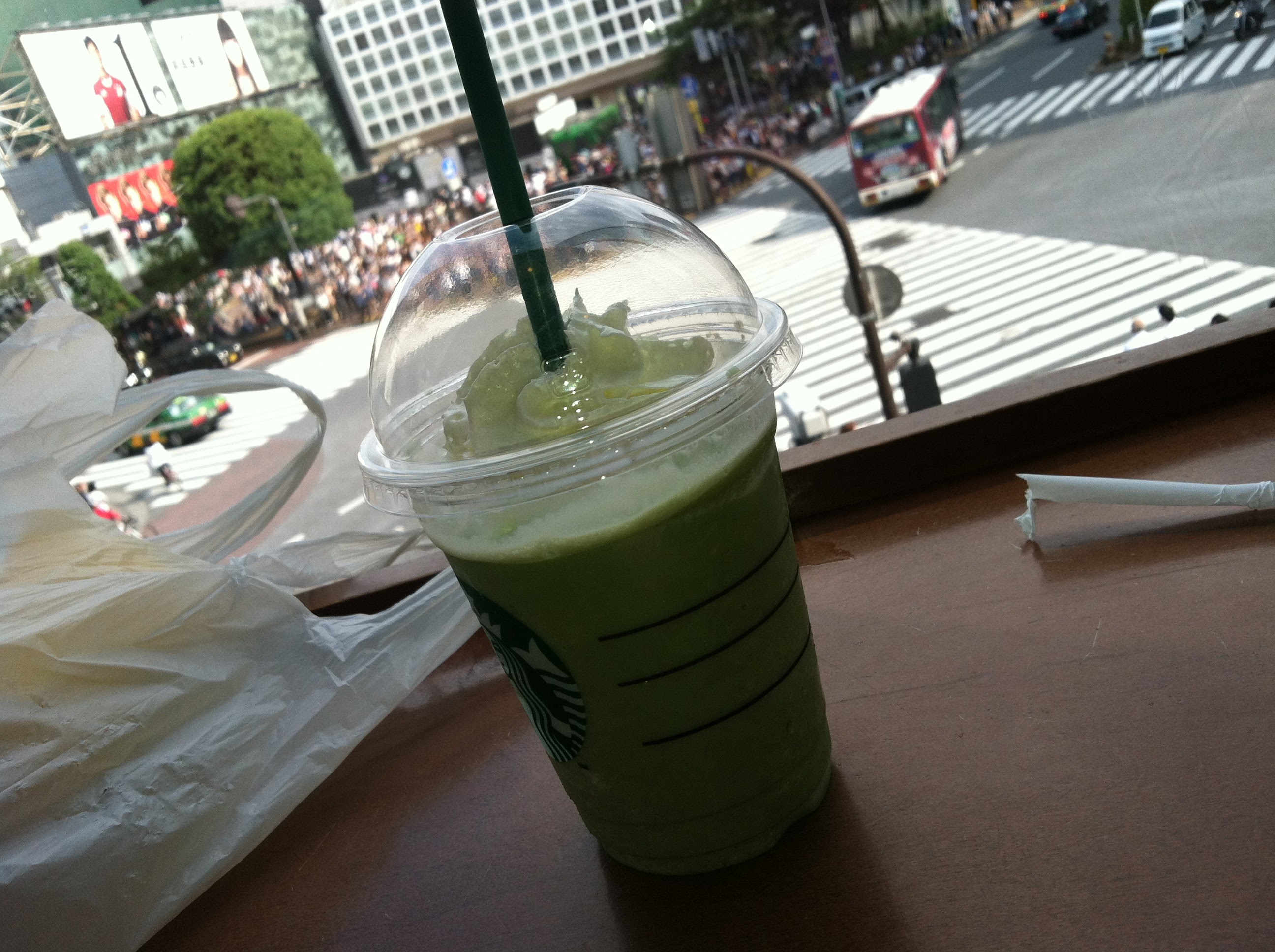 Rita and Sandra lead me across the famous Shibuya Crossing to the equally famous Starbucks (famous for its view of the famous crossing) and I try the famous national beverage: a Matcha Frappuccino. I’ve managed to burn myself out on these over the years, but I’ll never forget that first time trying it — just bright green liquid ambrosia in a plastic cup.