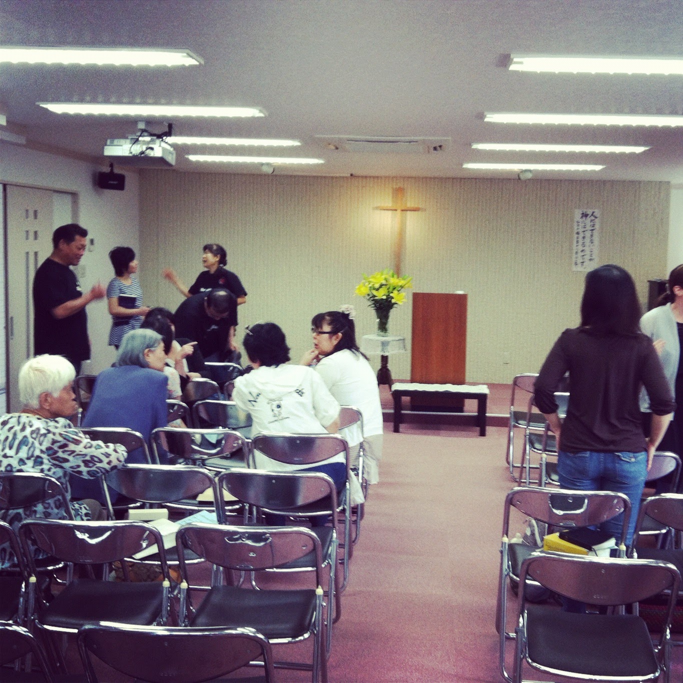 Compared to the crashing ocean waves of downtown Tokyo, the packed-in crowds of a single ice-cream shop, I’m a little taken aback by the sparse turn out for worshiping the King of creation on a Sunday morning. I’m not surprised exactly, I knew the evangelical statistics and all that. I’m just struck by the contrast. This city definitely thrives on all kinds of worship; work and entertainment and highly modern life.